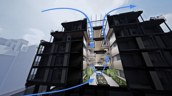 At the Marylebone Square project in London, the interior courtyard of the full-block building will be covered with glass. There will be exterior corridors on each floor around that central atrium that lead to people’s apartment doors. That will reduce the kind of enclosed spaces, such as lobbies and hallways, that people normally have to travel through.