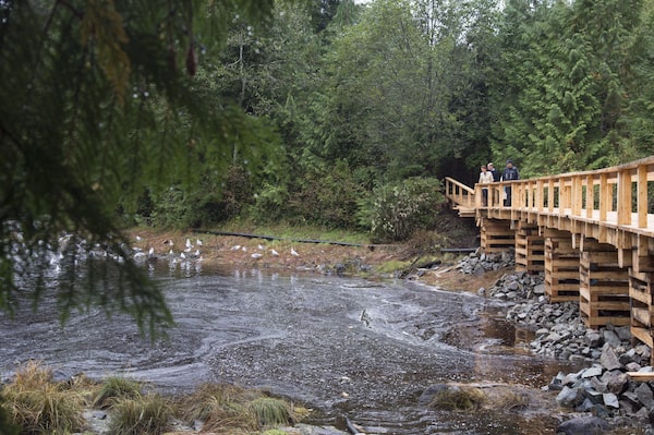 The then Duke and Duchess of Cambridge along with then premier of British Columbia Christy Clark walk through the rainforest in Bella Bella, B.C., on Sept 26, 2016.JONATHAN HAYWARD/The Canadian Press