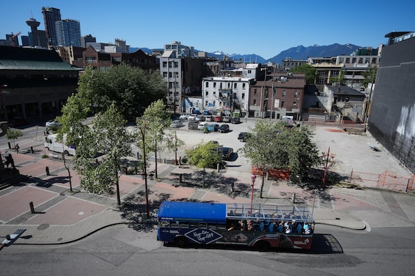 A tour bus stops in front of a parking lot that is the proposed site of a condo development in Vancouver's Chinatown, on June 6. The nondescript parking lot at the centre of debate about the future of Vancouver's historic Chinatown is unchanged in the six years since plans to build a condo tower there were shot down by the city's development permit board.DARRYL DYCK/The Canadian Press