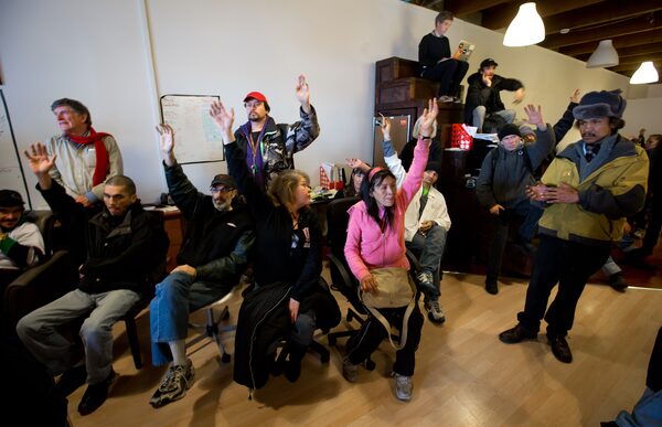 Downtown Eastside residents during a news conference at the Pivot Legal Society in Vancouver on Mar. 6, 2013.DARRYL DYCK/The Globe and Mail