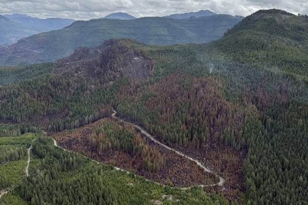 A burned section of forest from the Mount Underwood wildfire near Port Alberni, B.C., on Monday. Officials say the fire is not expected to grow beyond its current 36 square kilometres as the area warms up after several rainy days.HO/The Canadian Press
