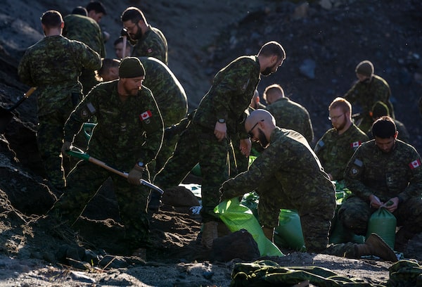 Members of the Canadian Forces fill sandbags in the Chawathil First Nation near Hope on Nov. 21.JONATHAN HAYWARD/The Canadian Press