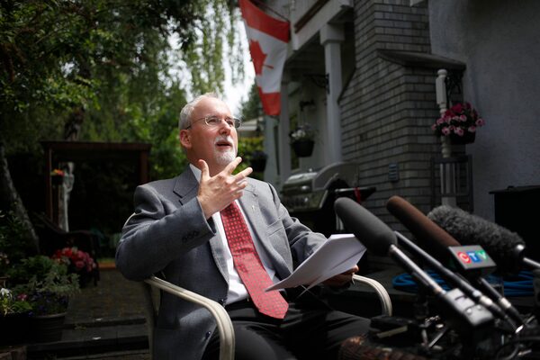 Suspended sergeant-at-arms Gary Lenz speaks to reporters at his home in North Saanich, B.C., on May 16, 2019.CHAD HIPOLITO/The Canadian Press