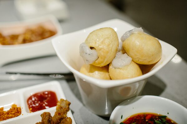 The fried bean curd rolls are nicely spongy and soak up the broths. Or is that the beef trachea? The most interesting dish that doesn’t taste like it came prepackaged off a shelf is a secret menu item – gluten balls stuffed tableside with shrimp paste tossed in raw egg.
