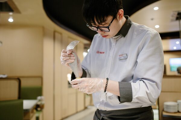 Had I been dining alone, the hostess would have brought me a giant teddy bear for company. Thankfully, I was meeting friends, who were already placing an order by iPad. You just click on the shopping cart and your selection goes straight to the kitchen. You can even pay with WeChat if you choose. No wonder the servers have time to fluff the tables with stuffed animals and fruit.