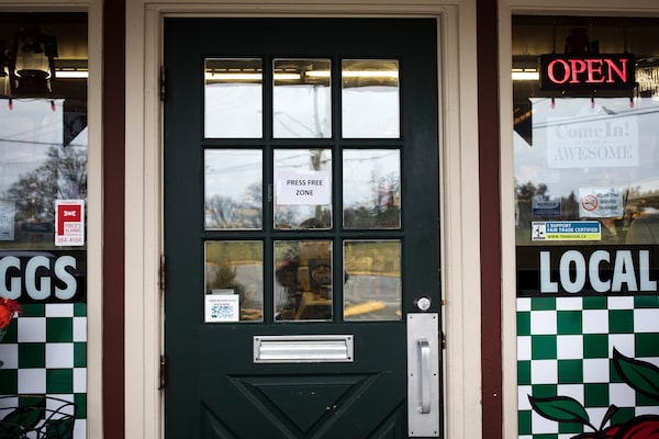 The nearest café, where Harry has stopped for sandwiches and coffee, has posted a sign reading “No press zone” to its front door, making its allegiance clear.