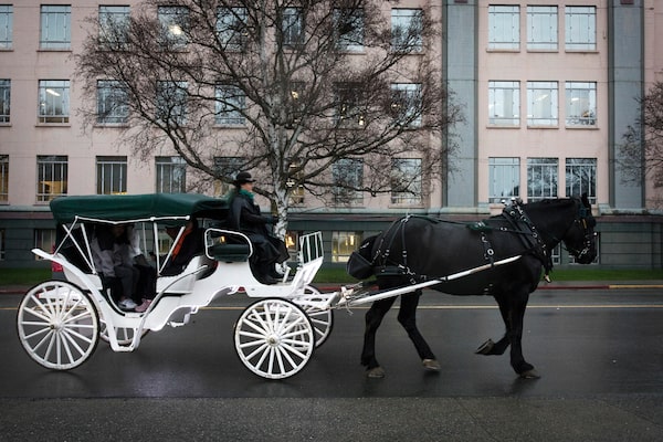 A horse-drawn carriage tour makes its way through Victoria. Vancouver Island has been getting used to the presence of the Duke and Duchess of Sussex, who are staying near the provincial capital in North Saanich.Photography by Melissa Renwick/The Globe and Mail/The Globe and Mail