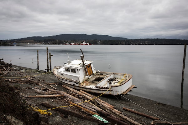 A boat is stranded on a beach within Tseycum First Nation territory that abuts the Sussexes' home in North Saanich.Melissa Renwick/Melissa Renwick