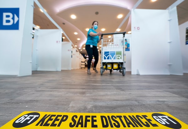 Richmond, B.C., Feb. 19: Staff at Vancouver International Airport set up a centre to screen new arrivals for COVID-19, as per new federal requirements taking effect later that week.Jonathan Hayward/The Canadian Press