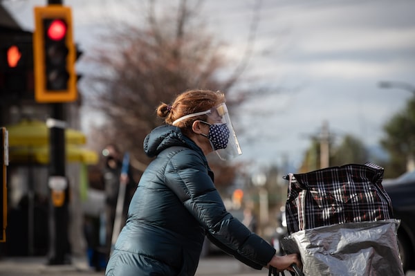 North Vancouver, Jan. 6: A masked woman walks with a face mask and shield to guard against COVID-19.Darryl Dyck/The Canadian Press