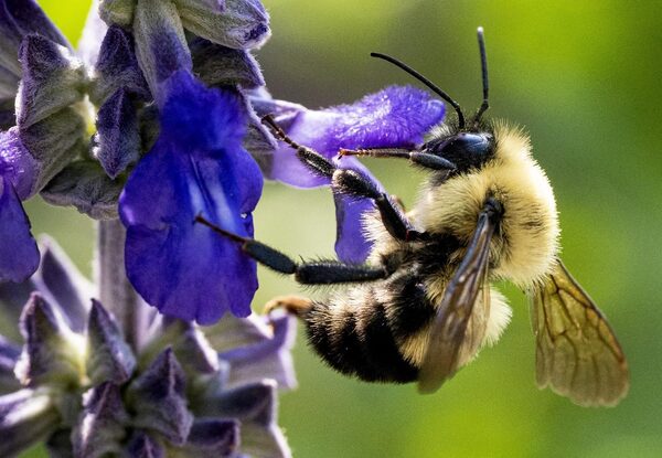 A bee gathers pollen from a flower in a July 30, 2019, file photo.The Canadian Press