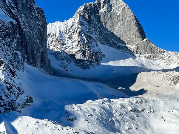 Drew Brayshaw, a climber who is also a geoscientist with Statlu Environmental Consulting Ltd. in Chilliwack, B.C., estimated that Snowpatch shed between 30,000 and 50,000 cubic metres of rock. After examining the initial photos, he said it appears as though the rock detached along an existing failure plane, on a climb known as Bugaboo Crack.