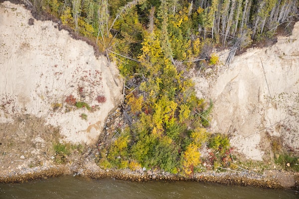 This patch of brush along the Nelson River in Northern Manitoba is where searchers found the remains of Kam McLeod and Bryer Schmegelsky on Aug. 7, 2019. Authorities had spent weeks searching for the two murder suspects.Melissa Tait/The Globe and Mail/The Globe and Mail