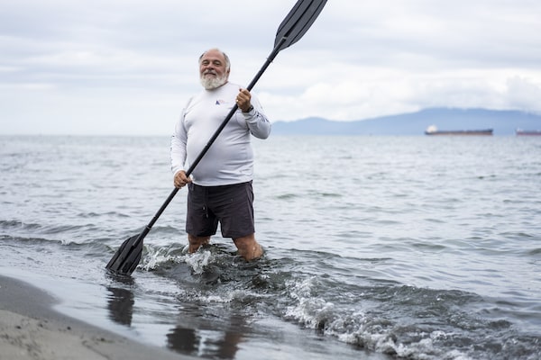 Dermot Higgins dips his paddle into the Pacific in Vancouver last month, after his solo canoe trip down the Yukon River this past summer.Jimmy Jeong/The Globe and Mail