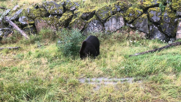 Near Dawson City, Mr. Higgins encountered a black bear that he shooed away with a chemical repellent that also knocked him unconscious.Courtesy of Dermot Higgins