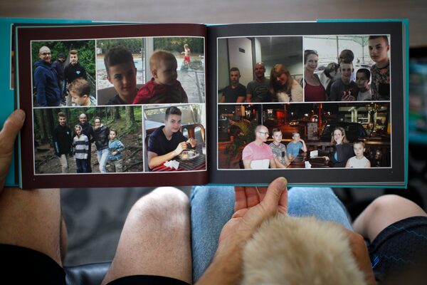 Ms. Staples, Mr. Eurchuk and their two other sons look over a book of family photos of Elliot.CHAD HIPOLITO