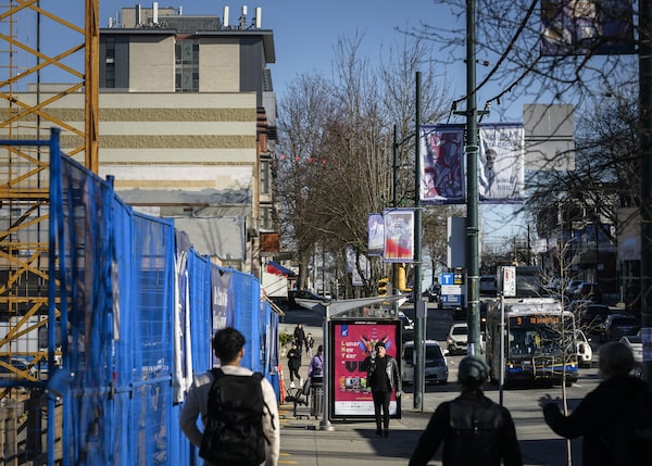 Pedestrians walk along Broadway street in Vancouver on Feb. 16. Jennifer Gauthier/The Globe and Mail