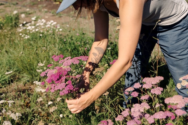 Ms. Jacobs works in the hot afternoon sun cutting yarrow flowers at Sandown.Taylor Roades/The Globe and Mail
