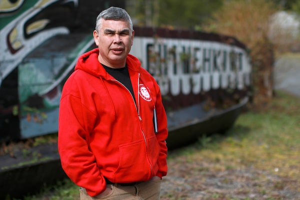 Ehattesaht Chief Simon John outside the band office following a meeting about the orphaned killer whale calf in Zeballos, B.C., on April 3.CHAD HIPOLITO/The Canadian Press