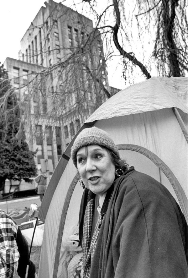 Vancouver sex worker Jamie Lee Hamilton camps in front of city hall during a rally to pressure the city to fund a drop-in centre for prostitutes, on Jan. 29, 1998.Christopher Grabowski/The Globe and Mail