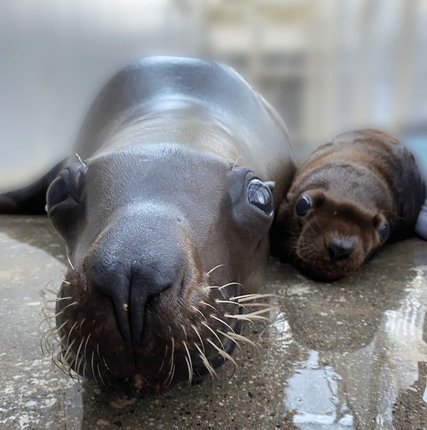 Mom and pup are currently in a private area of the aquarium but the statement says they will be moved to the Seal Cove exhibit for public viewing.
