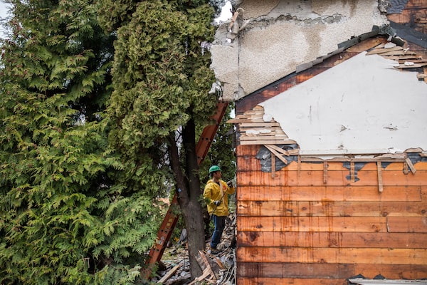 December 13, 2019; Victoria, B.C.: The Unbuilders demolition company work on a partially deconstructed and recycled house in Esquimalt, B.C.James MacDonald/The Globe and Mail