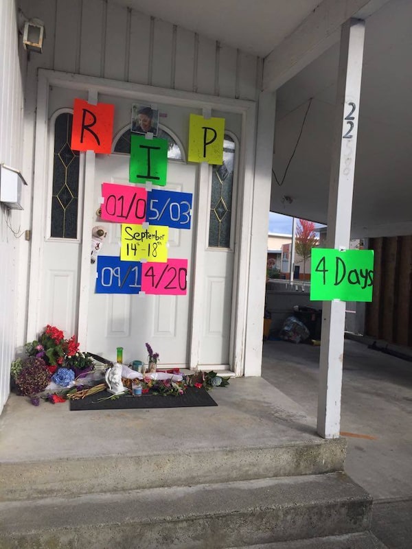 A small memorial to Traevon stands outside the group home in the fall of 2020.Supplied