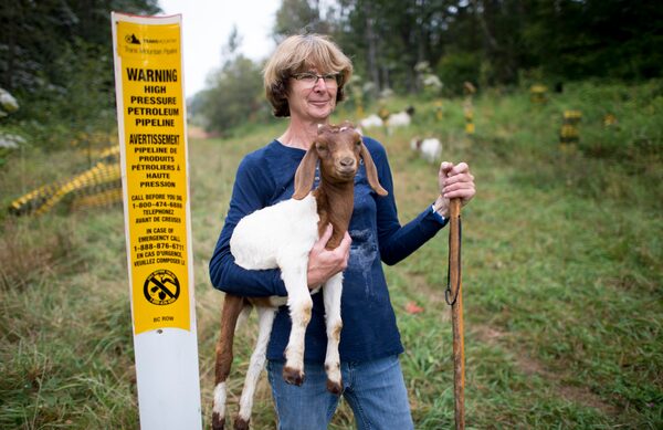 Barbara Gard is pictured on her land which runs along the Trans Mountain pipeline and is where construction will take place for the expansion taking away grazing land for her goats and other livestock in Abbotsford, B.C..JONATHAN HAYWARD/The Canadian Press