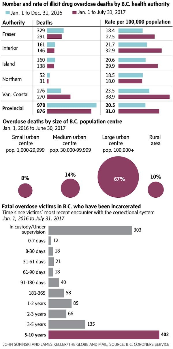 Two-thirds of British Columbians who died of drug overdoses in recent years were at some point in their lives in custody or under community supervision, highlighting the need to improve access to treatment behind bars and connect inmates with health care upon release.