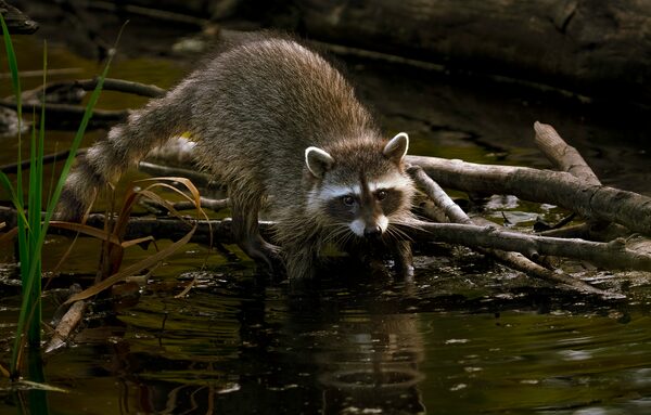 A raccoon touches the water of a pond in Stanley Park at twilight.The Globe and Mail