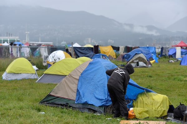 A resident is seen next to a tent in Vancouver on June 15, 2020.JENNIFER GAUTHIER/Reuters