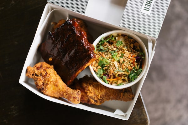 I didn’t mind that we also had to order our chicken and waffles online, or that it was delivered to our bar stool in takeout containers and a paper bag. It was actually better than having it delivered to my home because the food only travelled a few metres from the kitchen and didn’t steam up in an insulated DoorDash bag or lose any of its deep-fried crunchiness.