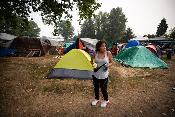 Homeless advocate Chrissy Brett is seen at the Strathcona Park homeless encampment, in Vancouver, on Sept. 17, 2020.DARRYL DYCK/The Globe and Mail