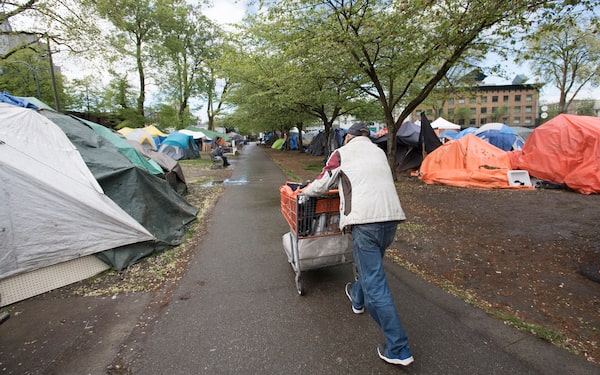 'By far, the greater risk in the Downtown Eastside' – Oppenheimer Park seen here on April 27, 2020 – 'continues to be the opioid overdose crisis,' Patricia Daly saidJONATHAN HAYWARD/The Canadian Press