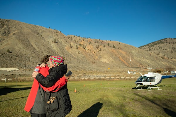 Kim Cardinal, right, is comforted by a friend after returning from a helicopter flight to view what remains of her home. The Nicola River swallowed up the hobby farm she runs with her partner near Spences Bridge, B.C.Artur Gajda/The Globe and Mail