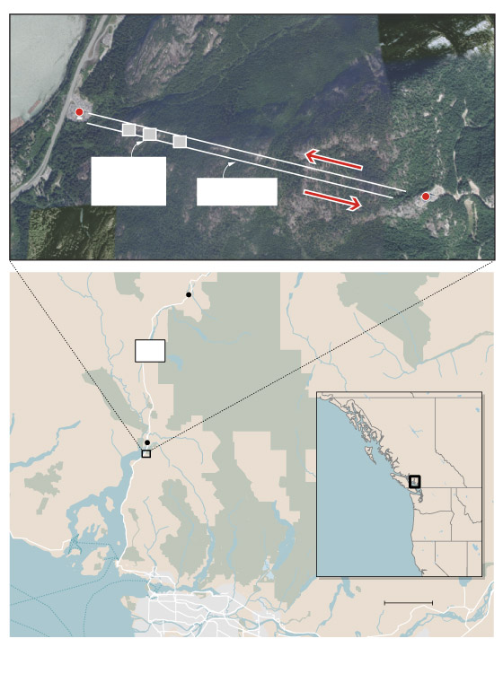 To get eyes on the support towers on Sept. 14, the security guard ran to the clearing beneath the rope. It was hopeless: The Squamish Valley was blanketed by a thick wall of smoke. It had blown north from Oregon where out-of-control wildfires would eventually swallow more than 1,000,000 acres of land. The timing of the incident - when the area was shrouded by a literal smoke screen – was not likely a coincidence.