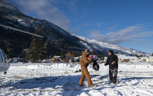 Community members are invited to take whatever they require, says Dennis Lapierre, Siska’s emergency co-ordinator. On Monday, he ploughed a metre of fresh snow to create a makeshift landing zone in an open field to allow three choppers to come in.