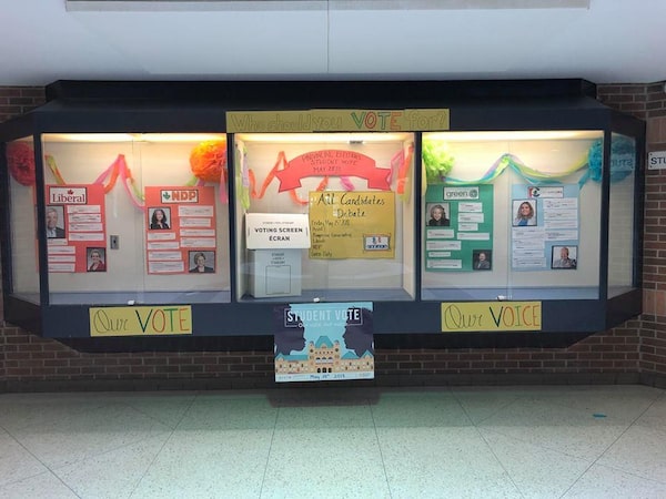 East York Collegiate's information display on the Ontario election through Student Vote.East York Collegiate