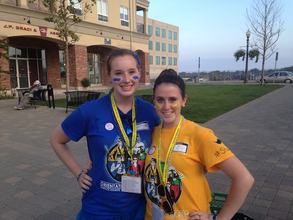 Wilfrid Laurier University grad Kelly Warren, left, and her friend Emily Shea volunteer during orientation week in 2014.