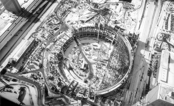 Aerial shot of the Skydome being constructed in February 1988.John McNeill/The Globe and Mail