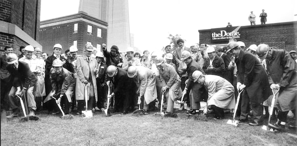 Ten dignitaries donned golden hard hats and used silver shovels to turn sod for the new stadium on Oct. 3, 1986.Edward Regan/The Globe and Mail
