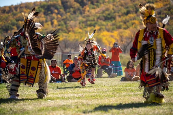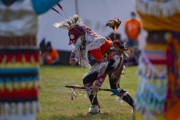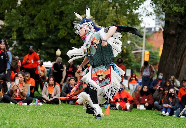 Dancers perform at a powwow during a Reconciliation Day event in Cowessess First Nation.Liam Richards/The Canadian Press