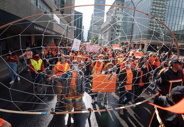 A large dreamcatcher is carried as people take part in a march to mark the first National Day for Truth and Reconciliation in Montreal.Ryan Remiorz/The Canadian Press