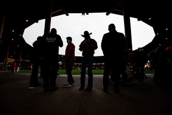 People are silhouetted while attending a Tk'emlups te Secwepemc ceremony to honour residential school survivors and mark the first National Day for Truth and Reconciliation, in Kamloops, BC.DARRYL DYCK/The Canadian Press