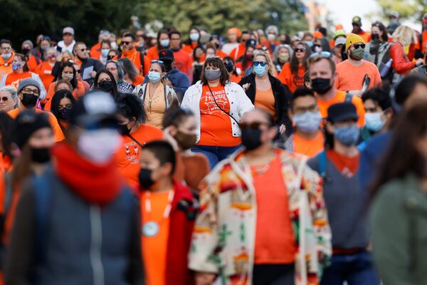 People march from Parliament Hill during Canada's first National Day for Truth and Reconciliation, honouring the lost children and survivors of Indigenous residential schools, their families and communities, in Ottawa.BLAIR GABLE/Reuters