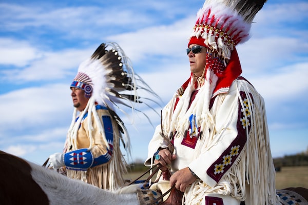 Chief Ouray Crowfoot (right) and Councilman Kent Ayoungman (left) ride their horses during a commemorative ride on the Siksika Nation on September 30, 2021. The Blackfoot Siksika Nation recognized the first ever National Day for Truth & Reconciliation with a commemorative ride, a walk from the old residential school, words from nation elders, and traditional dancers.Gavin John/The Globe and Mail