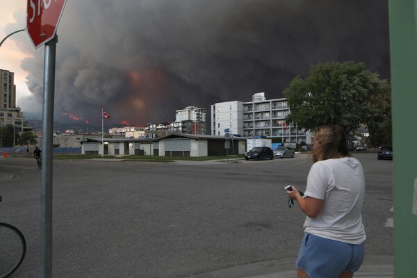 A person watches smoke from the McDougall Creek wildfire from downtown Kelowna, B.C.Aaron Hemens/The Globe and Mail