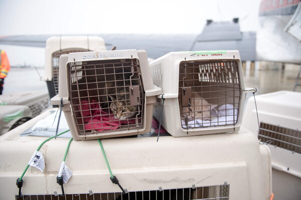 Animals are offloaded in Edmonton from a Buffalo Airways plane coming from the Northwest Territories.ANDREJ IVANOV/AFP/Getty Images