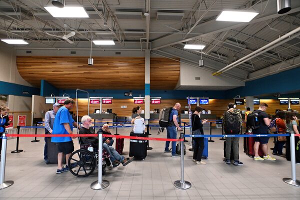 Lines at the airport in Yellowknife as evacuations continue from wildfires.JENNIFER GAUTHIER/Reuters