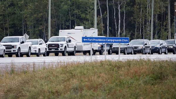 Evacuees from Yellowknife queue up to get gas at Big River Service in Ft. Providence, Alberta.Bill Braden/The Canadian Press
